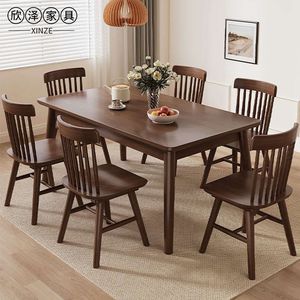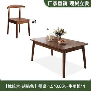 全实木北欧餐桌长方形吃饭桌子家用小户型现代简约胡桃餐桌椅组合