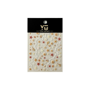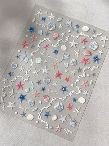 オーシャンシェルライトレリーフネイルアートステッカーフラッシュレインボーシェルコンクヒトデ粘着裏地付きネイルデコレーションステッカー