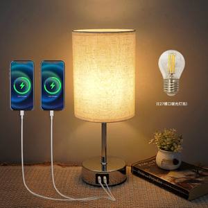 ファブリックテーブルランプソケット USB taye-c 携帯電話充電テーブルランプ寮の寝室のベッドサイドランプタッチ雰囲気ランプ