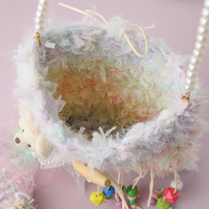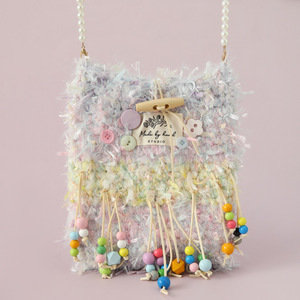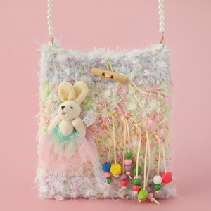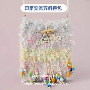 インガールハートドリームレインボーカラフルな織バッグインディアンタッセルクロスボディバッグトライバルスタイルかぎ針編みウサギバッグ