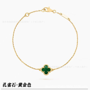梵家高版小众四叶草单花mini手链厚镀18k玫瑰金天然红玉髓百搭款