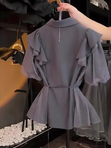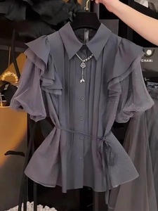 法式独特高级感小衫别致漂亮设计感小众纯色泡泡袖衬衫上衣女夏季