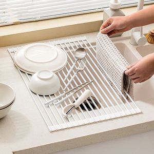 【水切りラック】シリコンシンク水切りラック 折りたたみ式食器収納 食器水切りバスケット キッチンシンク水切りラック