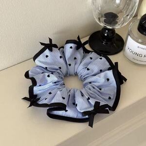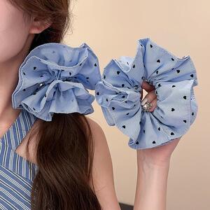 韩系高级感蝴蝶结立体头花发圈蓝色条纹爱心波点大肠发圈2025新款