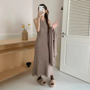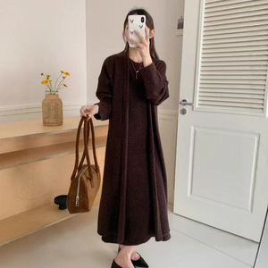 国境を越えた売れ筋の高級ニットロング膝上ゆったりレイジースタイルカーディガンジャケットセータースカート2点セット