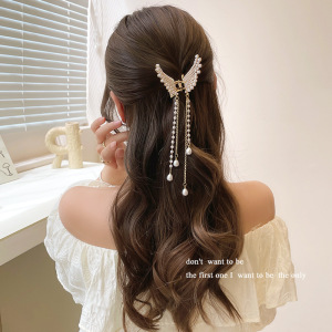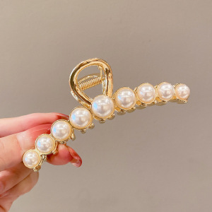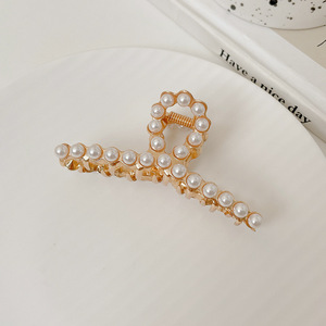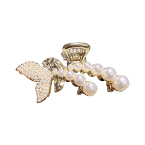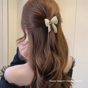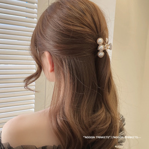 珍珠金属鲨鱼夹发卡女气质蝴蝶结抓夹后脑勺半扎发小号头饰高级感