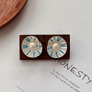 月光と詩レトロハイエンドフルダイヤモンドジルコンイヤリング女性のシェルパールイヤリングニッチデザイン法螺貝イヤリング