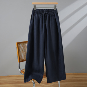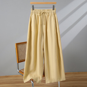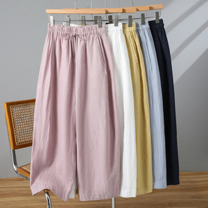 实拍2025夏季新品棉麻弯刀裤系带宽松休闲裤显瘦文艺棉麻裤女夏