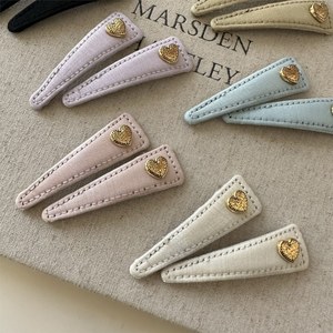 韩国新款布艺爱心三角形边夹刘海夹碎发夹侧边奶油色系发卡bb夹子