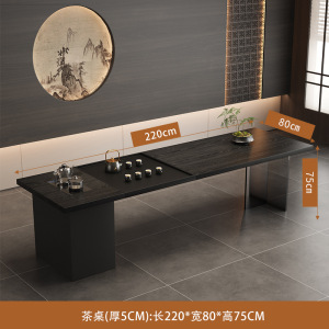 パインウッドティーテーブル: 220*80*75/厚さ5cm [象嵌黒金石ティートレイ+電磁調理器]