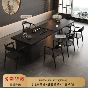 1.8m ティーテーブル + 無垢材シュメットチェア + 無垢材広島チェア * 4 + 無料 [黒金石茶盆 + 電磁調理器]