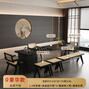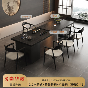 2.8m ティーテーブル + クッションシュメットチェア + クッション広島椅子 * 6 + 無料 [黒金石茶盆 + 電磁調理器]