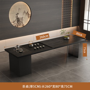 パインウッドティーテーブル: 260*80*75/厚さ5cm [象嵌黒金石ティートレイ+電磁調理器]