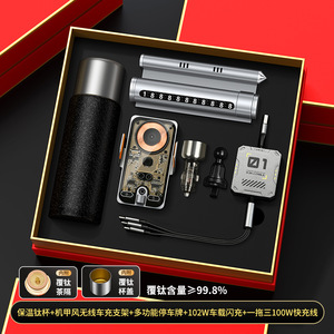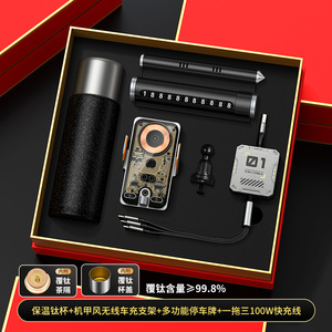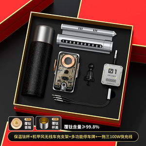 【汽车用品】银/覆钛杯+透明车充支架+停车牌+1拖3机甲线/红围条盒