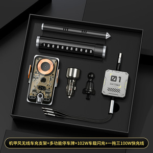 【汽车用品】黑/覆钛杯+透明车充支架+停车牌+1拖3机甲线/红围条盒