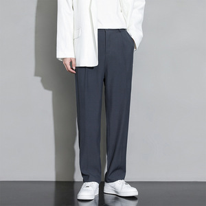 夏季高级垂感西裤男宽松直筒长裤韩系潮流西装裤男士休闲裤子