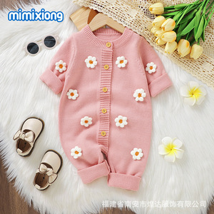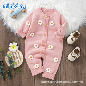 インホット販売秋と冬の新しいベビーニットワンピースベビー女の子手刺繍ハイハイスーツ