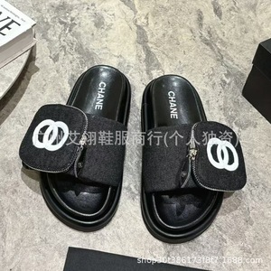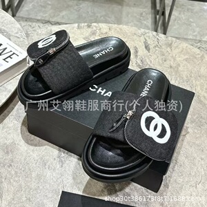 小香风一字拖休闲鞋女外穿网红厚底2025春夏新款沙滩鞋防滑凉拖鞋