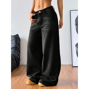 女性のためのデザインされたハイウエストジーンズ 2025 夏の新しいスタイルのルーズで多用途なスリムでドレープのあるワイドレッグフロアレングスパンツ