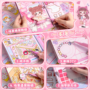 クリエイティブなドレスアップステッカーゲームブック子供用手作りDIYシーンメイクアップステッカー無料カットミニチュア造園ステッカー
