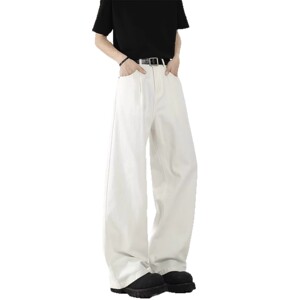 潮流流行新款文艺气质无品牌白色简约百搭休闲直筒阔腿牛仔裤百搭