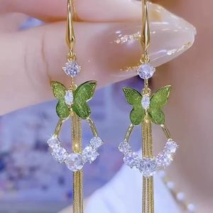 キャッツアイフラワータッセルイヤリング、エレガントなロングスタイル、ハイエンド、ライトラグジュアリーイヤリング、韓国ネットセレブ人気イヤリング、イヤーフック