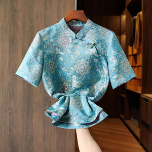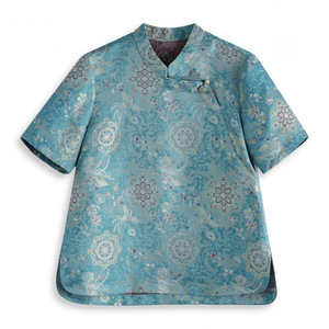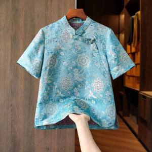 高品質通気性のあるマルベリーシルク年齢を軽減する中年女性の宋錦新中国風トップ夏改良されたボタンダウンシャツ
