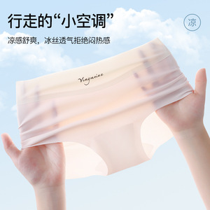 新しい夏のアイスシルクシームレス下着女性の夏の小さなボクサーブリーフ通気性非挟み込み抗菌アイスシルク女性の下着