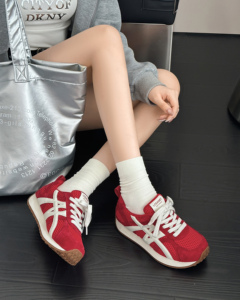 女性用本革トレーニングシューズ2025秋新作韓国版ソフトソール足が疲れにくいカラーマッチング多用途カジュアルスポーツランニングシューズ