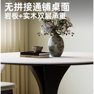 法式实木岩板圆形餐桌椅组合现代简约家用小户型纯白高端复古饭桌