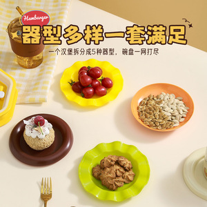汉堡包碗盘套装家用餐盘餐具碟子碗套组高颜值吐骨碟饭碗酱油碟子