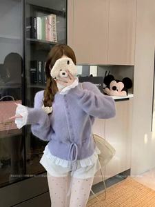 假两件韩系甜美减龄蕾丝花边收腰系带毛衣女秋冬新款针织开衫女