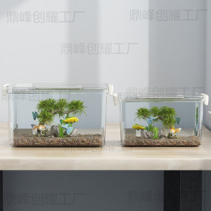 高透PET鱼缸生态箱高清金鱼缸饲养水族乌龟仓鼠生态造景收纳箱子
