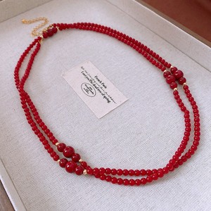 31#ネックレス-ゴールド-レッド-ガラスビーズ 4-8mm