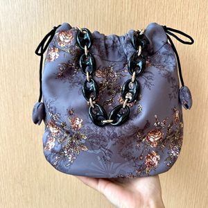 バケットバッグクロスボディバッグレディースナショナルスタイルハンドバッグシルク新中国風の女性のバッグ