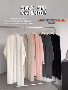 秋と冬の厚みのある膝丈のイミテーションミンクベルベットニットカーディガンコート無地多用途ルーズレイジースタイルコート