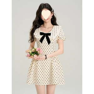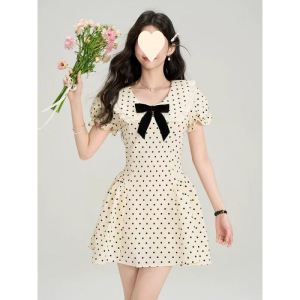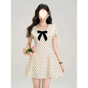 女性用フレンチポルカドットドレス、夏の新しいスタイル、小柄で見栄えの良いスカート、気質ウエストAラインショートスカート