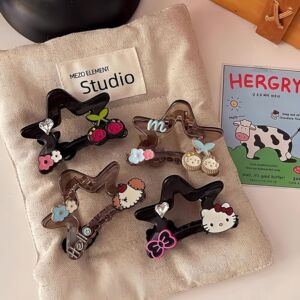 女性用のかわいくて甘い漫画の中空スターグリッパー、2025年の新しいハイエンドのサメクリップ、後頭部用の多用途のヘアクリップ