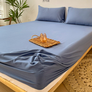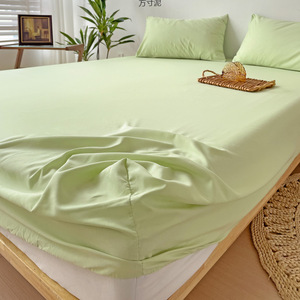 ボックスシーツ シングルカラー ベッドカバー シンプル ウォッシュドコットン パック 保護カバー シングルベッドシーツ 3点セット 外国貿易工場サプライチェーン