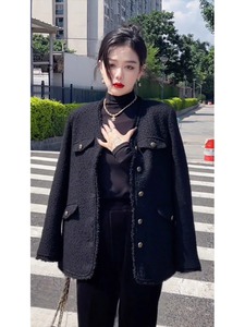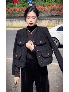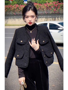 法式小个子洋气高级感名媛黑色粗花呢chic小香风外套女秋冬季韩系