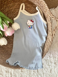 子供服ワンピース 女の子 夏 サマードレス 2025 ヒップカバー ワンピース 女児 KTプリント ノースリーブワンピース フリル付き