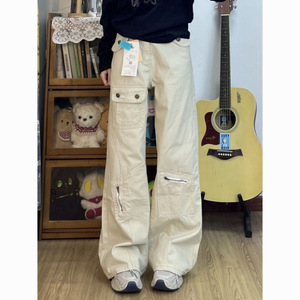 【广州新塘牛仔】工装微喇牛仔裤女高腰显瘦多口袋不贴腿马蹄拖地