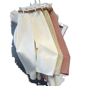 卡其色直筒牛仔裤女夏季2025年新款小个子窄版九分薄款阔腿裤