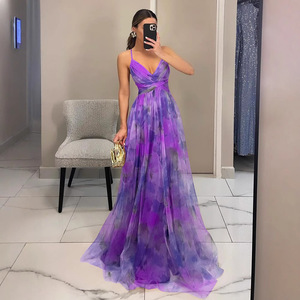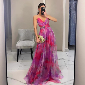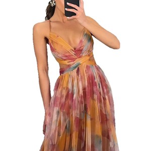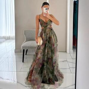 クロスボーダー 2025 ヨーロッパとアメリカの春夏の新メッシュプリントサスペンダードレス INS バケーションカジュアルパーティードレス