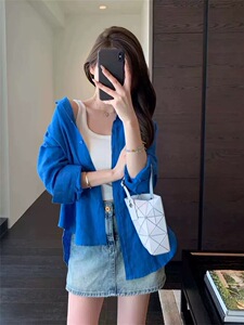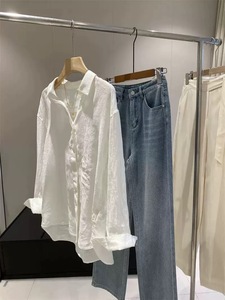夏の女性用フレンチホワイトリネンシャツ、薄手でゆったりとした気質、オールドマネースタイルの高級コットンとリネンのシャツ、日焼け止めトップ