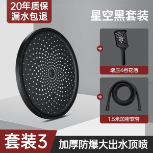 ラウンド【星空ブラックセット1】ジャイアントスクリーントップスプレー+スーパーチャージャー4段シャワー