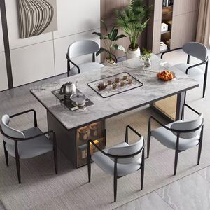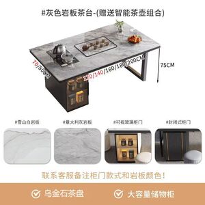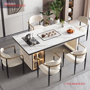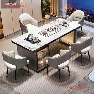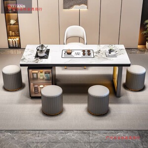 网红意式轻奢岩板茶桌一体一整套办公室功夫茶桌椅组合长方形茶台