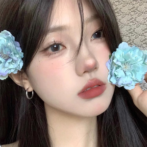 梦幻蓝山茶花发夹仿真花朵侧边夹甜美清新纯欲风海边度假饰品