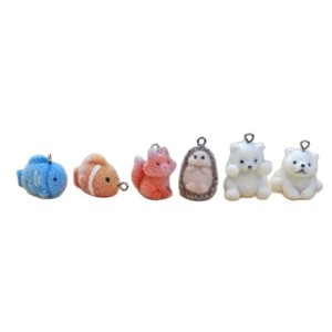 クロスボーダー植毛樹脂立体漫画かわいいクマキツネ魚人形キーホルダー DIY フローバッグペンダント
