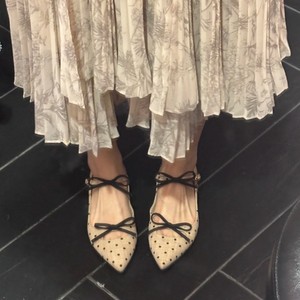 平底波点网纱豆豆仙女鞋夏天尖头蝴蝶结软底浅口透气女单鞋